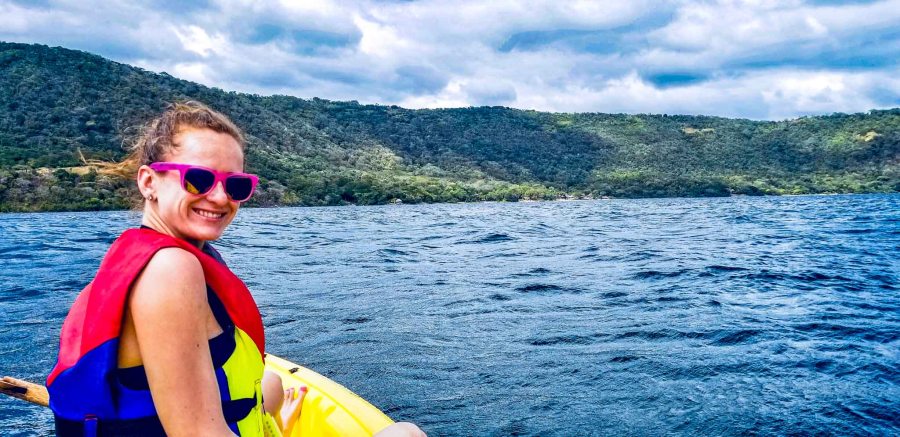 The crater of Apoyo is a PERFECT destination for any and all visitors. Most people come to this tranquil lake to relax and lounge, but as per our usual itinerary, we made sure to get in some activities before relaxing. The first thing we did was take a two-person kayak and challenged ourselves to reach the other side of the crater.