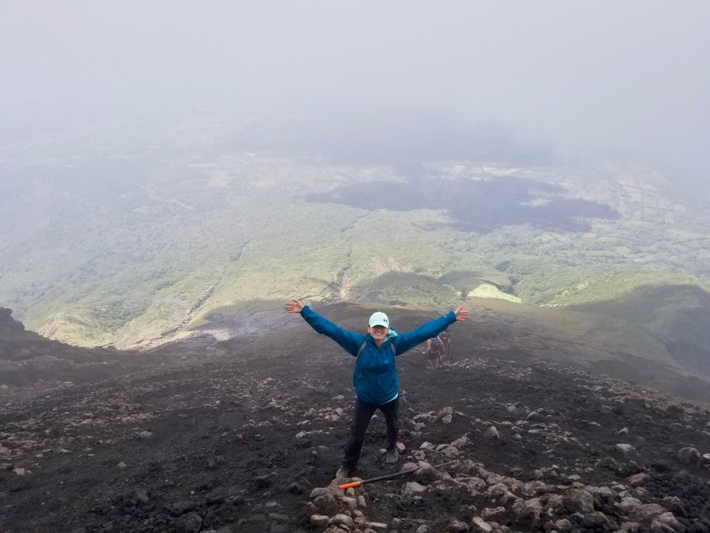 Side note: After summiting many peaks of volcanoes and mountains only to be met with clouds and limited visibility, I got so frustrated that I came up with a great invention idea – A cloud vacuum. This cloud vacuum would be a portable vacuum strong enough to suck up the sucky clouds that block amazing views at summits. Somebody; make it happen!