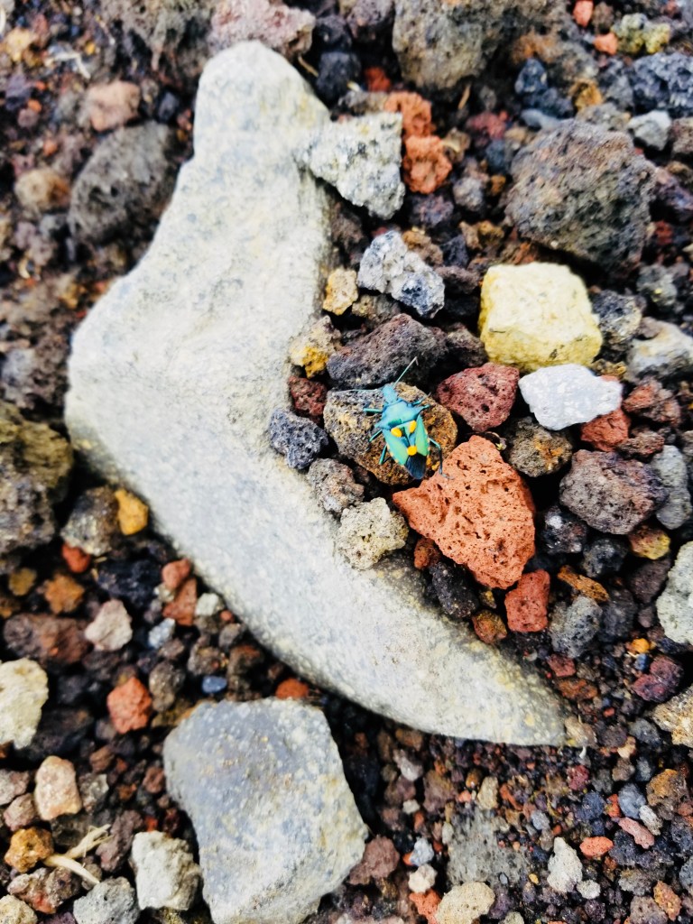 · Keeping your footing in the volcanic scree (impossible not to slip)