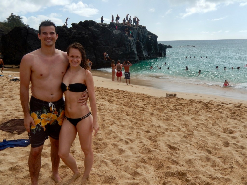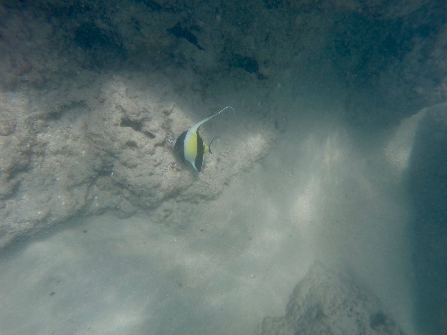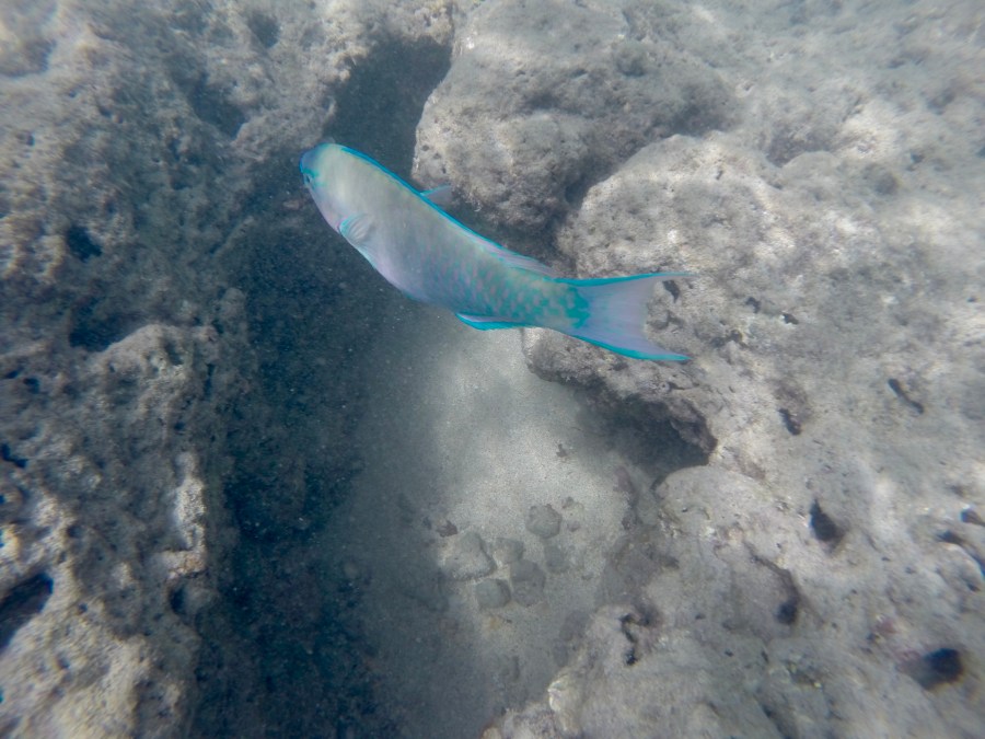 We were lucky to spot a Hawaiian Green Sea Turtle swimming in the beach cove.