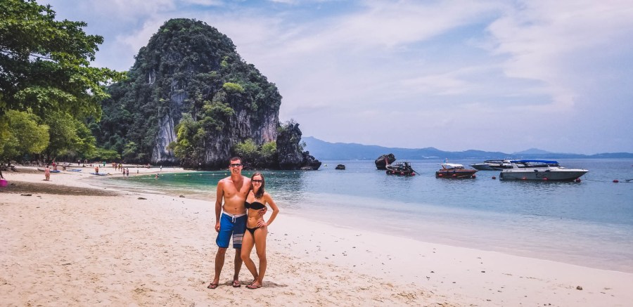 We think three days is sufficient. You’ll need one full day for rock climbing in the mecca of climbing – Railay. One day should be enough, unless you are a rock climbing expert with calloused hands. If you are going to add another day of rock climbing we would highly recommend splitting them up. You’ll also need another day to visit the Tiger Cave and explore the town by scooter. Then another day for a day trip of your choice. There are several to choose from including a “four island” tour, a day trip to Koh Phi Phi (where we came from), a trip to the “emerald pool and hot springs” or as we did a trip to Hong Island. You can add more days for additional day trips or activities as needed. We took 4 days because we have a credit card that offered us 4th night free on all of our hotel stays and it was certainly nice to take it slow.