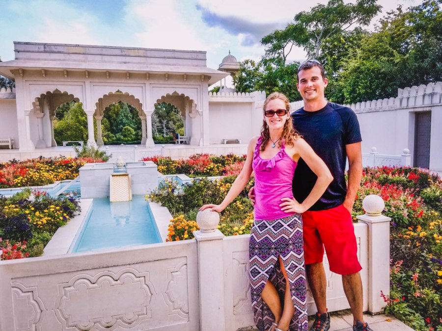My shirt accentuates the colorful garden at Hamilton Gardens, New Zealand