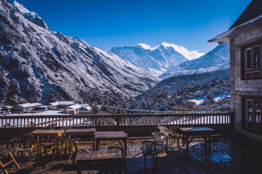 We arrived at Tashi Deleck Lodge & Restaurant, a teahouse with absolutely stunning views from the balcony including panoramic views of Everest, Lhotse, Ama Dablam, Nuptse, other mountains/peaks, and the Tengoboche monastery.