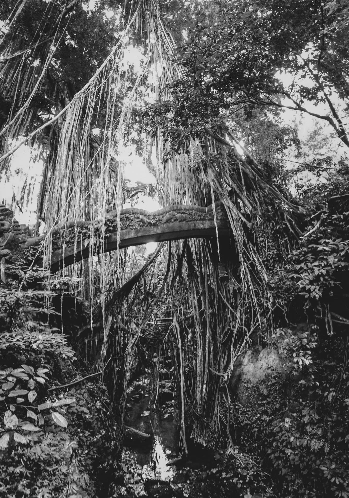 This bridge in the famous Sacred Monkey Forest of Ubud, Bali is being overtaken by the twisting tree vines